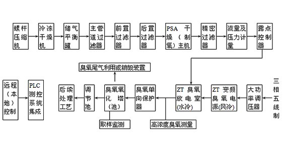 青島中通臭氧科技有限公司的科技人員和國(guó)內(nèi)諸多環(huán)保專家通力合作,在石油、化工、制藥、焦化、印染、造紙等領(lǐng)域作了有益嘗試和工程探索。現(xiàn)將主要大型臭氧裝備工藝予以介紹: